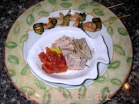Spiedini di melone e crudo serviti con involtino di fico con colata di melone, ricettina di Danita per la quale i miei ospiti si sono offerti di fare da cavie...soddisfatissime!!!